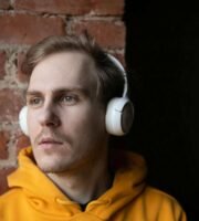 A modern kitchen countertop features a glass electric kettle with a stainless steel base, filled partially with water. Nearby, a white container holds several metallic cooking utensils such as spatulas and ladles. In the background, a microwave oven and other kitchen appliances are slightly blurred.